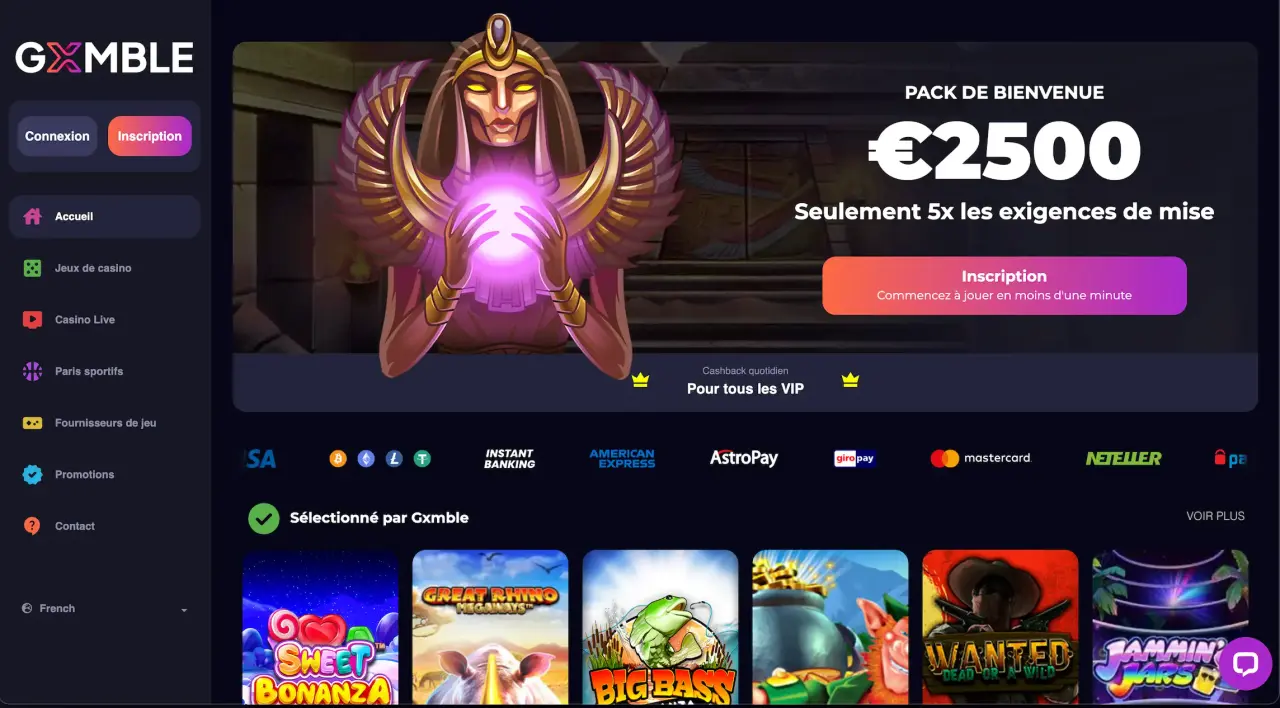 En testant Gxmble Casino, nous avons identifié plusieurs points forts qui le différencient de la concurrence :