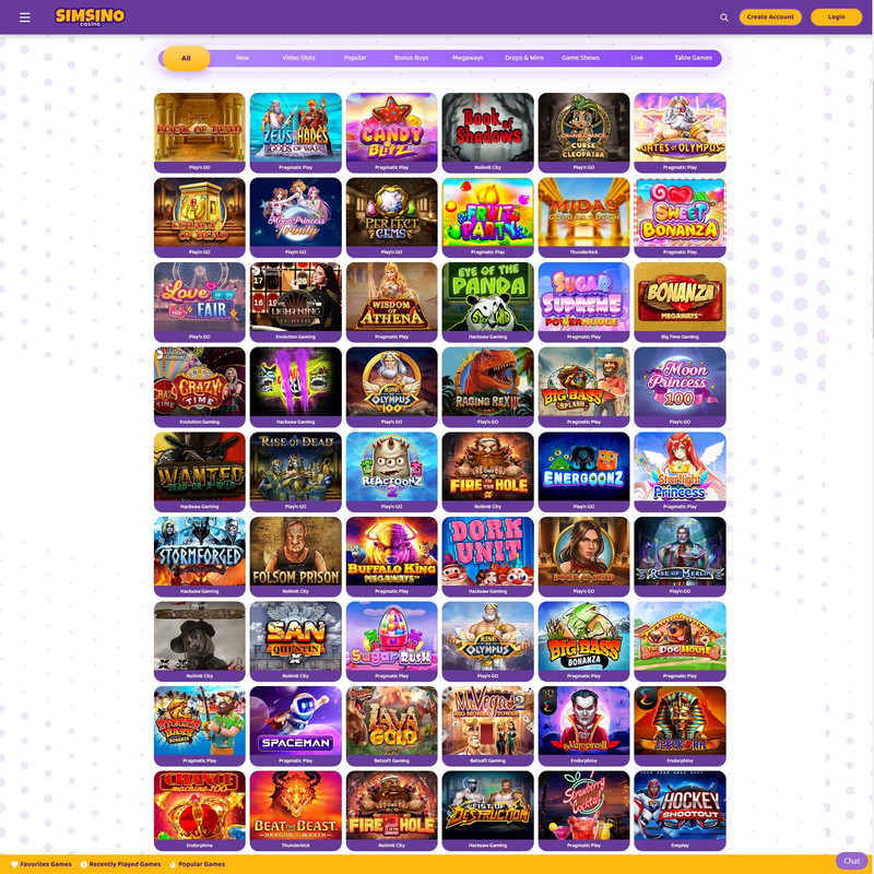 Un casino en ligne ne serait rien sans une offre de jeux de qualité, et Simsino ne déçoit pas à ce niveau. Avec plus de 2 500 jeux disponibles, la plateforme promet des heures de divertissement pour tous les goûts. Voici ce que vous y trouverez :